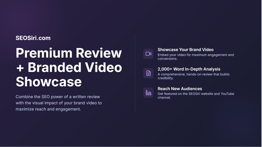 Your video is a powerful asset, but it's only effective if your target audience sees it. By combining the SEO power of our in-depth written review with the visual engagement of your video, you create a powerful, multi-format resource that satisfies user intent, increases dwell time, and converts visitors more effectively.